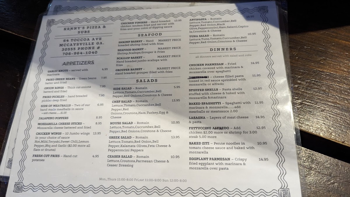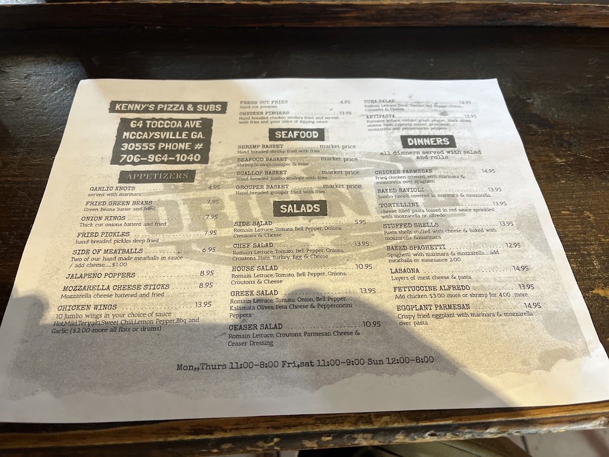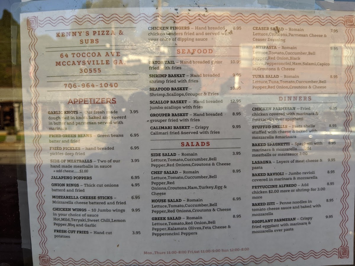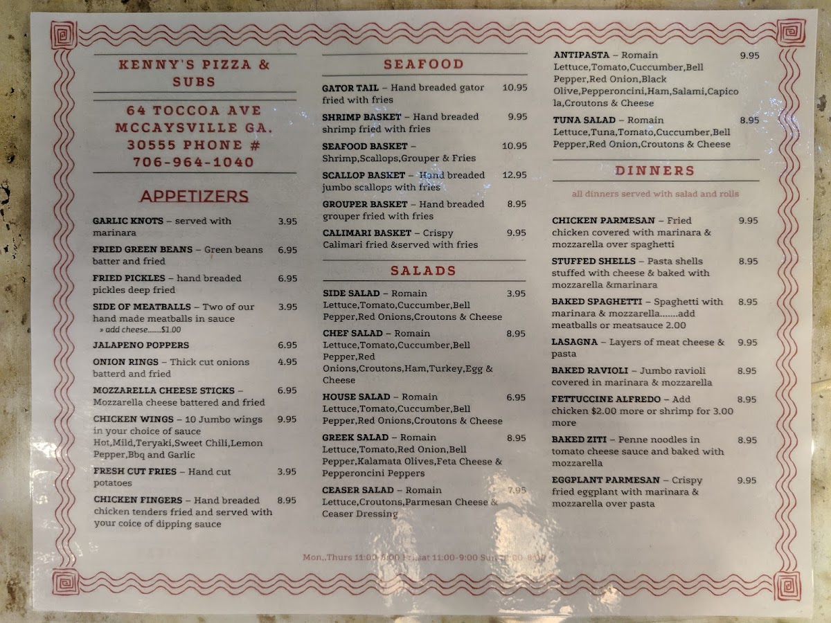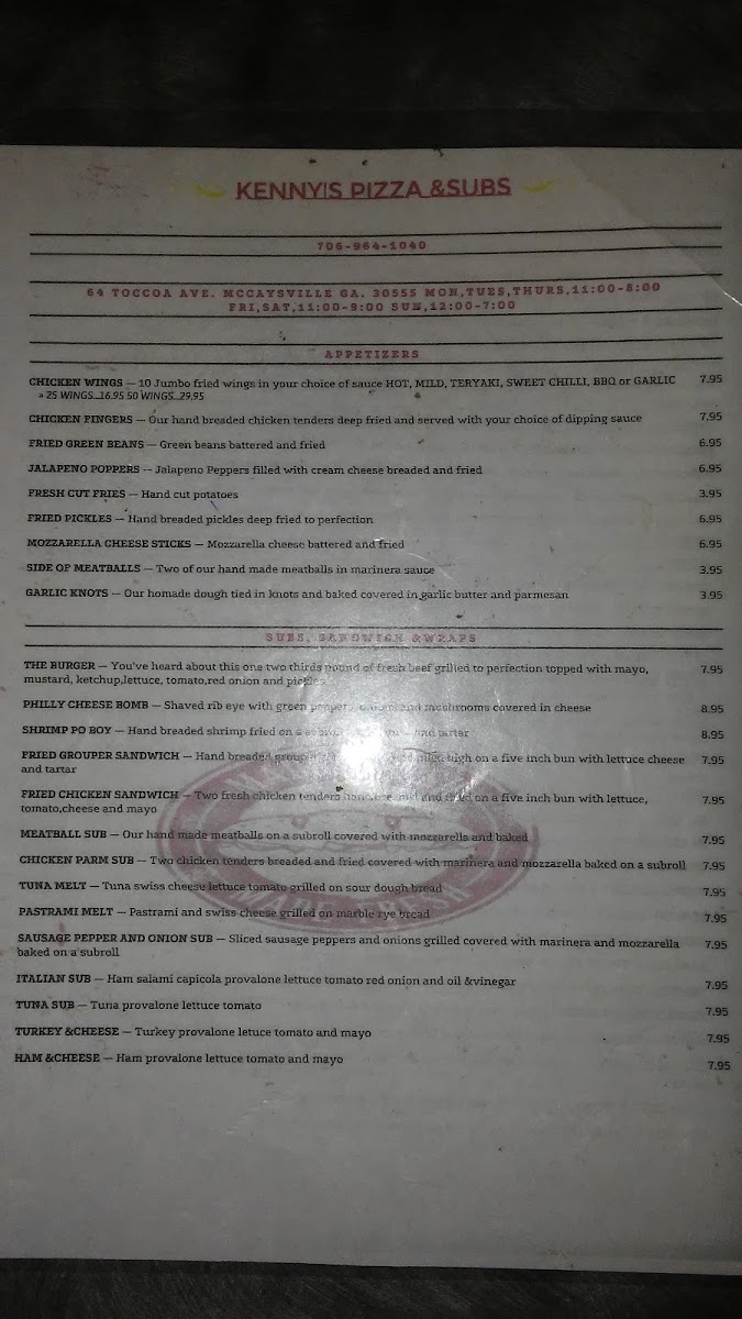 Kenny's Pizza & Subs Menu